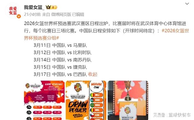 尽管距离2026年女篮世预赛开战还有大几个月的时间,不过,在近日,国际篮联却正式公布了2026年女篮世预赛赛程,中国队将会在7天内迎来5场苦战。小组赛首秀,中国队将对阵非洲劲旅马里,随后迎战小组赛头号劲敌比利时,而小组赛收官战,他们将对阵美洲劲旅巴西队。从小组赛赛程上来看,这一样的赛程对于中国队确实太有利的,女篮冲击小组赛第一名似乎稳了。